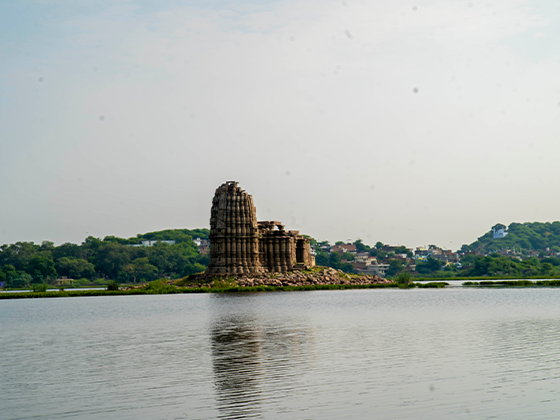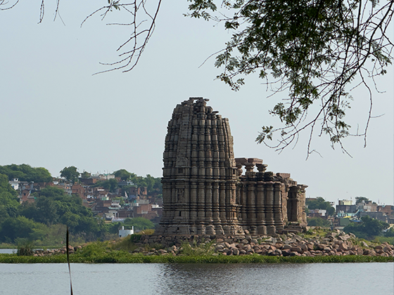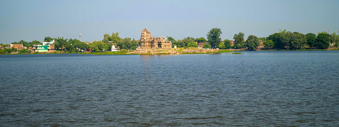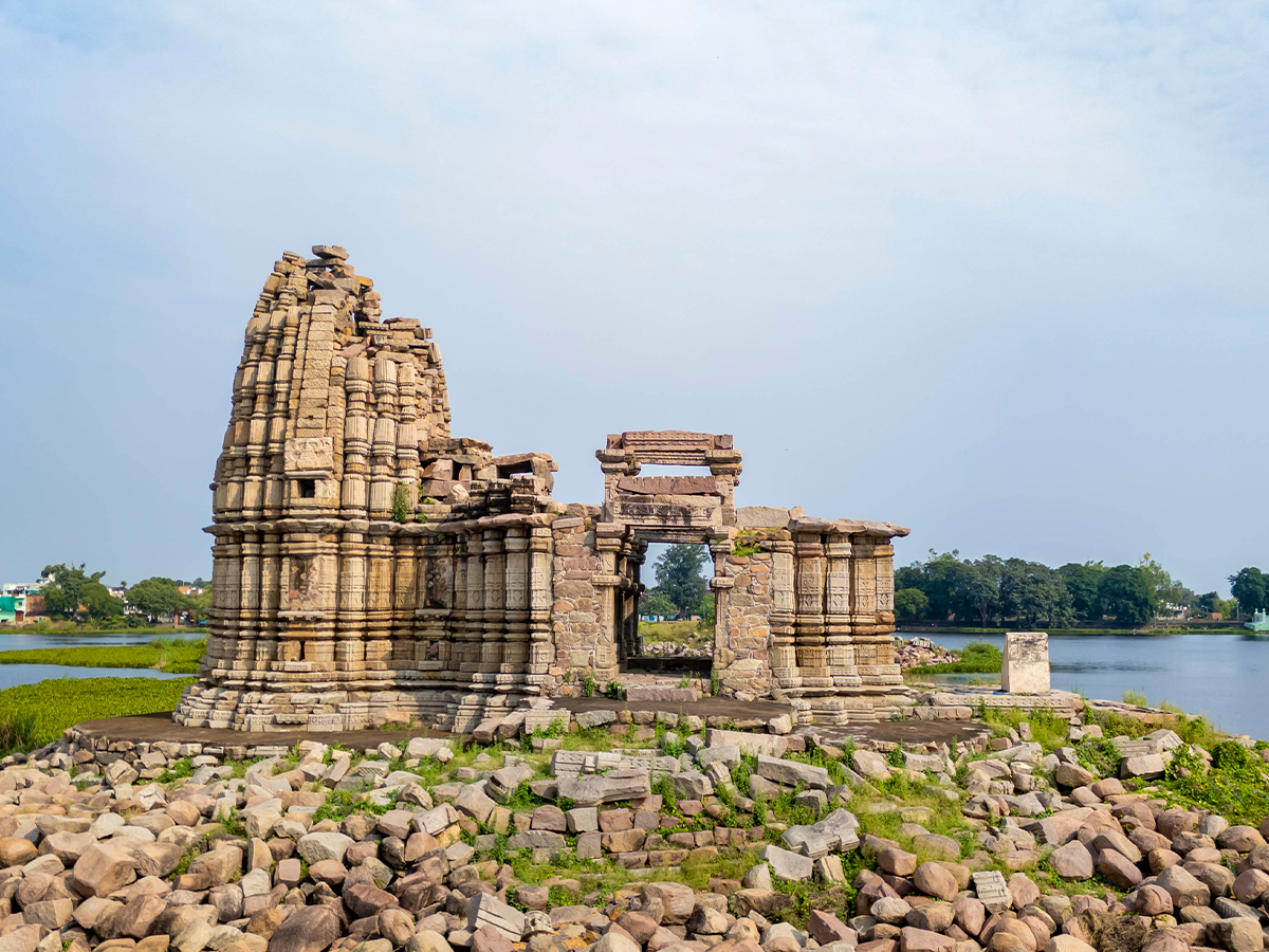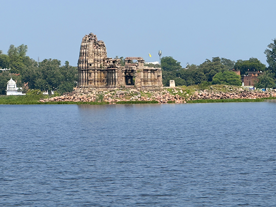 Island Temple – A serene Chandela-era shrine rising gracefully from the waters of Madan Sagar Lake.